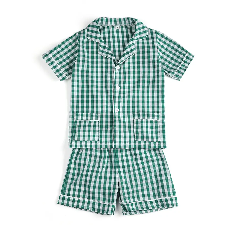 2024 Seersucker 100% Cotton Stitch Kids Pajamas Sets Loungewear Summer Pijamas